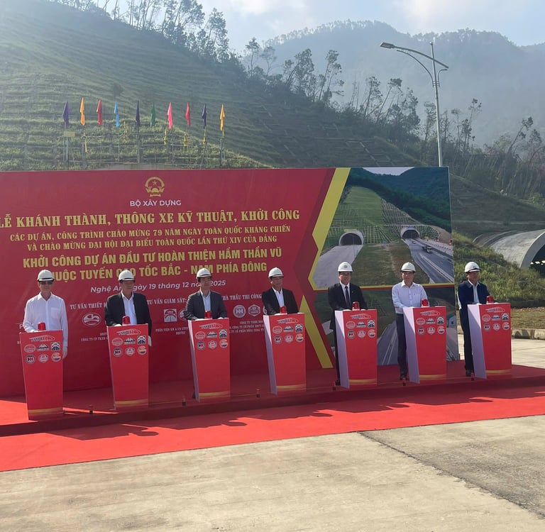 Sáng 19/12/2025, tại xã Tân Châu (tỉnh Nghệ An), Ban Quản lý Dự án Đường sắt - Bộ Xây dựng, đã tổ chức Lễ khởi công Dự án đầu tư hoàn thiện hầm Thần Vũ. Dự án có chiều dài tuyến khoảng 8,2km, với tổng mức đầu tư hơn 2.000 tỷ đồng, trải dài từ xã Tân Châu đến nút giao Nghi Phương. Các hạng mục chính gồm: mở rộng tuyến chính từ 4 làn lên 6 làn xe, bề rộng nền đường tối thiểu 32,25m; xây dựng thêm đơn nguyên mới cho 3 cầu trên tuyến với tổng chiều dài 4,1km, bảo đảm đồng bộ bề rộng 16,25m; hoàn thiện ống hầm Thần Vũ phía trái tuyến dài 1.087m; đồng thời lắp đặt hệ thống giao thông thông minh (ITS). Nhà thầu thi công là Liên danh Công ty TNHH Hoà Hiệp, Tổng công ty XDCT giao thông 8 - CTCP, Công ty CP Tổng công ty Xây dựng Cầu 75.